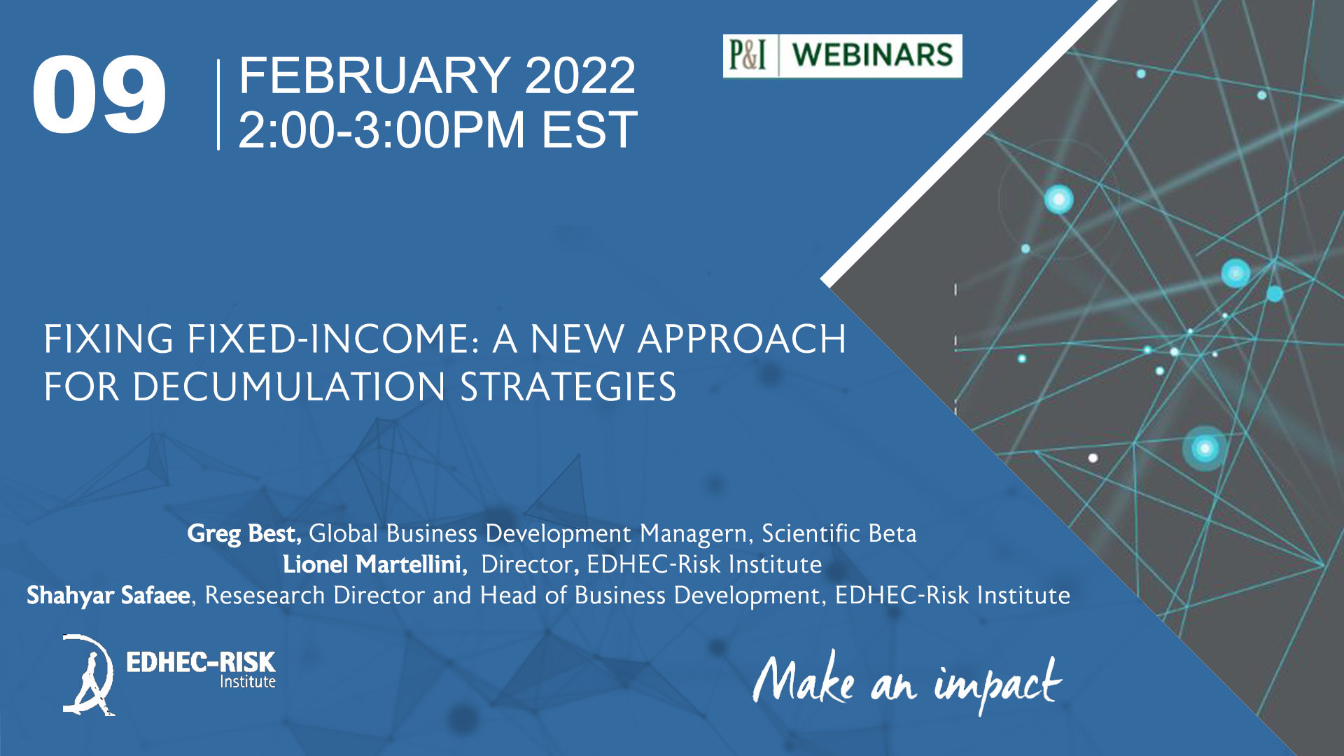 Based on EDHEC Risk Institute’s research in the area of Retirement Bond Portfolios, Scientific Beta is offering a new series of decumulation bond indices that secure, throughout the whole duration of the decumulation strategy, a series of fixed cash flows that are not exposed to either interest rate or credit risk.