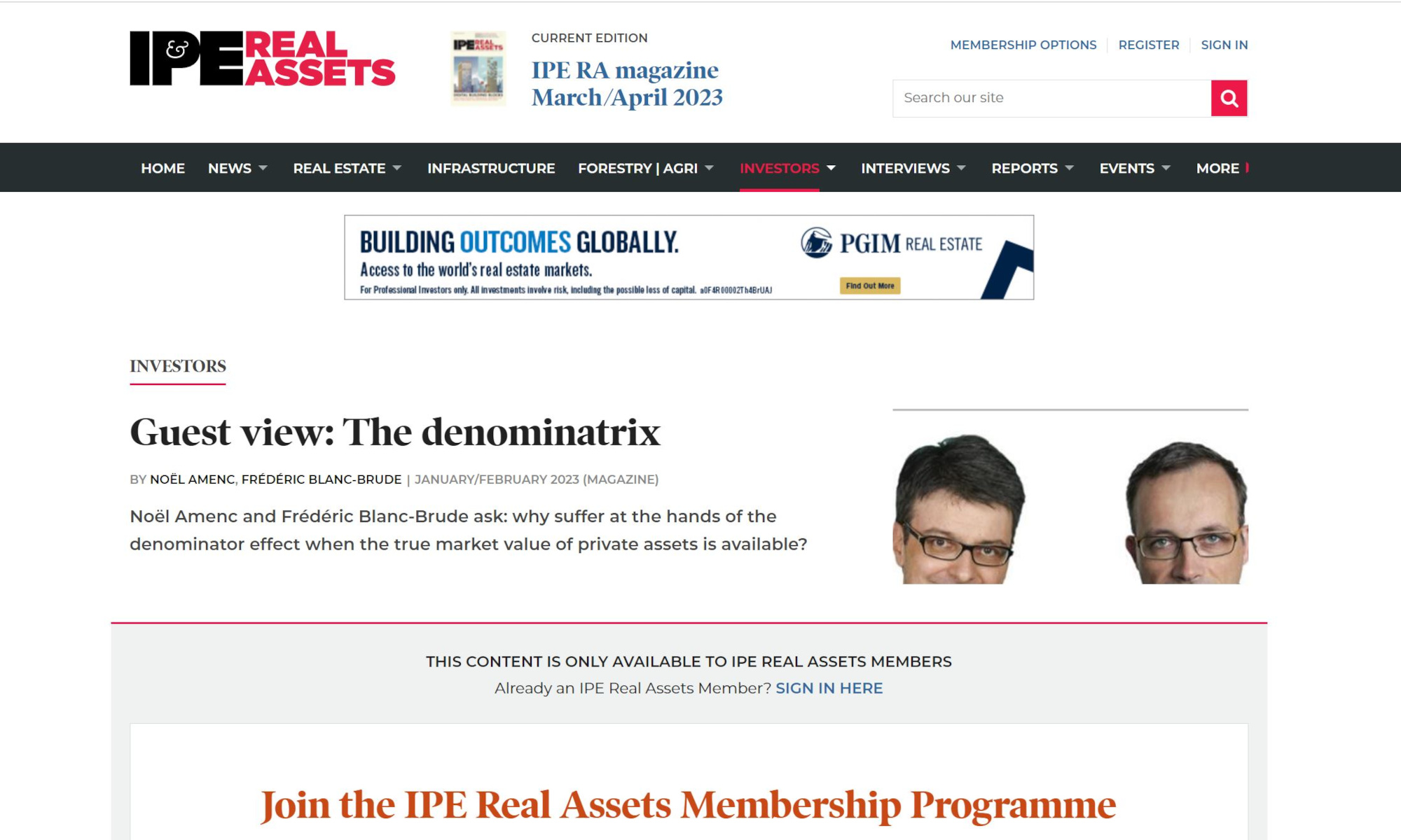 Press review - Discover this article published at the end of January in IPE Real Assets by Noël Amenc and Frédéric Blanc-Brude.