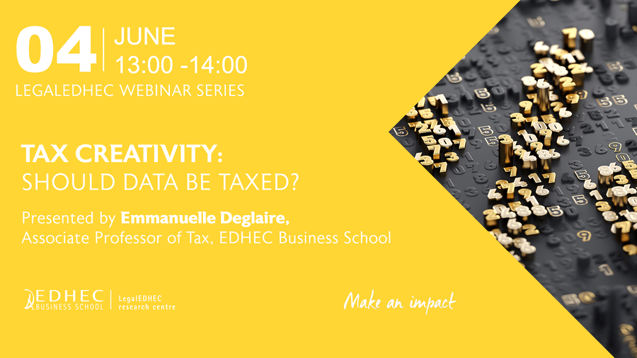 Emmanuelle Deglaire, Associate Professor of Tax and Researcher at the LegalEDHEC research centre, EDHEC Business School invite you to join her for a webinar entitled "Tax creativity: Should data be taxed?" on Thursday, 4 June, 2020 at 1.00 pm ( Paris Time)