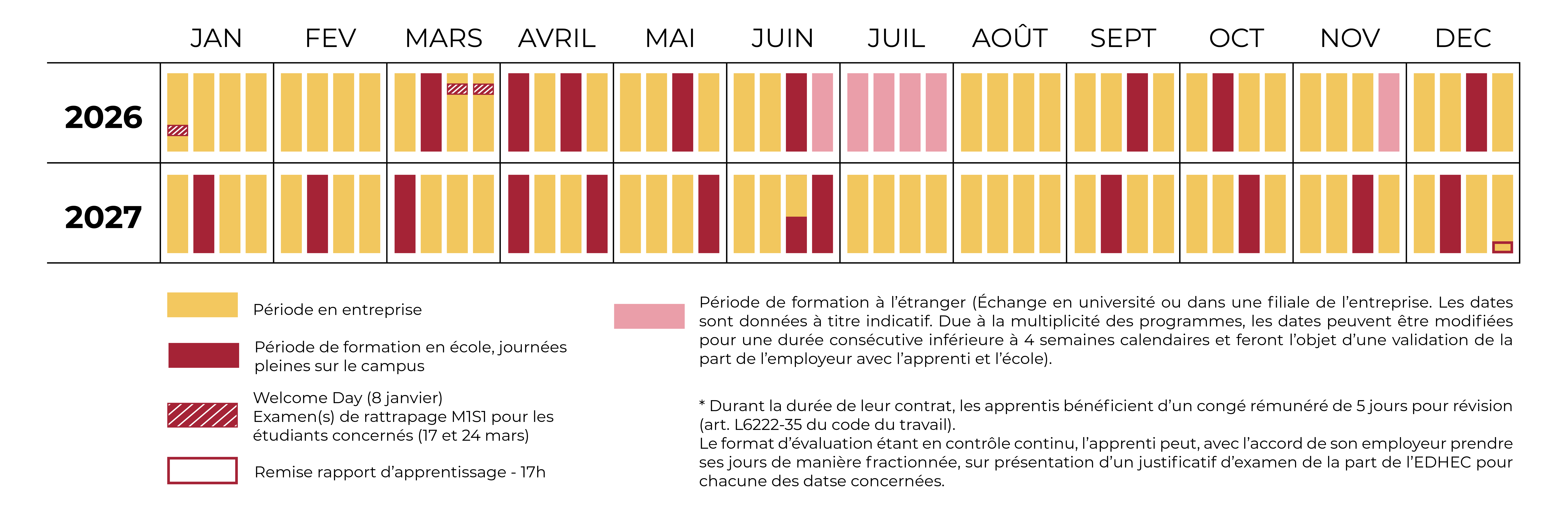 Les apports théoriques d’une formation complétés par la mise en pratique au sein d’une entreprise, en conditions réelles, préparent idéalement les jeunes apprentis de l’EDHEC aux futures fonctions qu’ils occuperont. L’EDHEC est une école reconnue. De plus, le format d’apprentissage 3 semaines en entreprise et 1 semaine en formation est propice à une immersion presque totale en entreprise. Cela permet de traiter les sujets en profondeur et répondre aux problématiques rencontrées de manière plus pertinentes par rapport aux formats habituels (3j/2j ou 1/2 semaines)