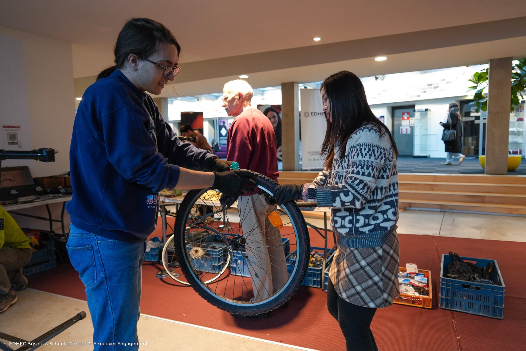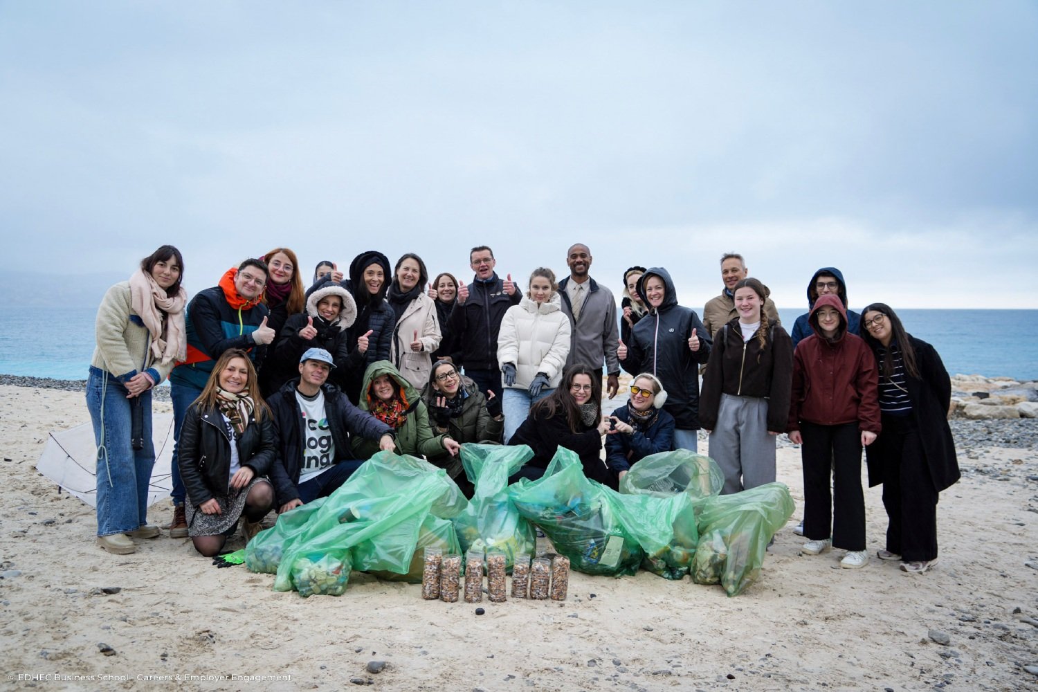 L’EDHEC a aussi proposé à l’ensemble de ses collaborateurs de participer à la Fresque des Nouveaux Récits, un atelier collaboratif conçu pour imaginer des futurs durables. Par ailleurs, une action solidaire était organisée sur chacun des trois campus de l’école. À Paris, les collaborateurs ont participé à la distribution de petits-déjeuners pour des personnes sans domicile, aux côtés de l’association La Chorba. À Nice, ils ont pris part à une matinée solidaire avec Nice Plogging, une association qui combine la marche et la collecte de déchets sur les plages. À Lille, ils se sont engagés auprès d’Amitié Partage, une association qui soutient les personnes en difficulté.