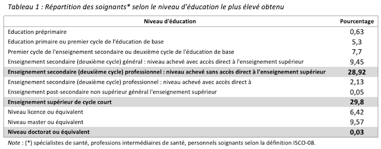 En France, le niveau de diplôme le plus élevé obtenu par nos soignants durant leur formation initiale est assez large et couvre l’ensemble du spectre des niveaux de diplômes produits par notre système éducatif.