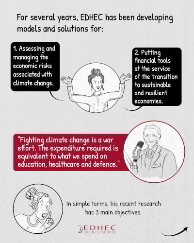 L'EDHEC Business School développe depuis plusieurs années, à travers différentes initiatives, des modèles et des solutions pour évaluer les risques économiques liés au changement climatique et pour mettre les outils financiers au service de la transition vers une économie durable et résiliente.